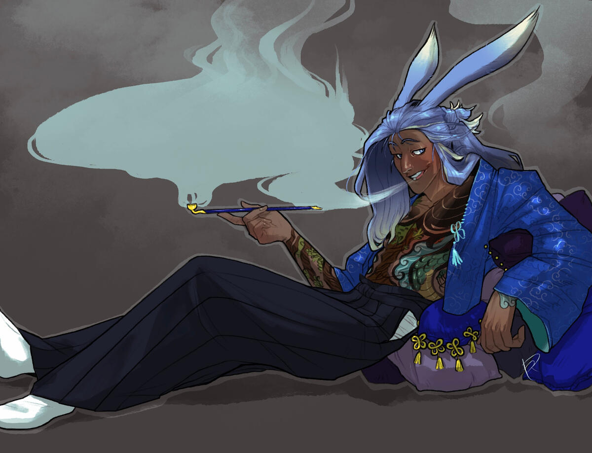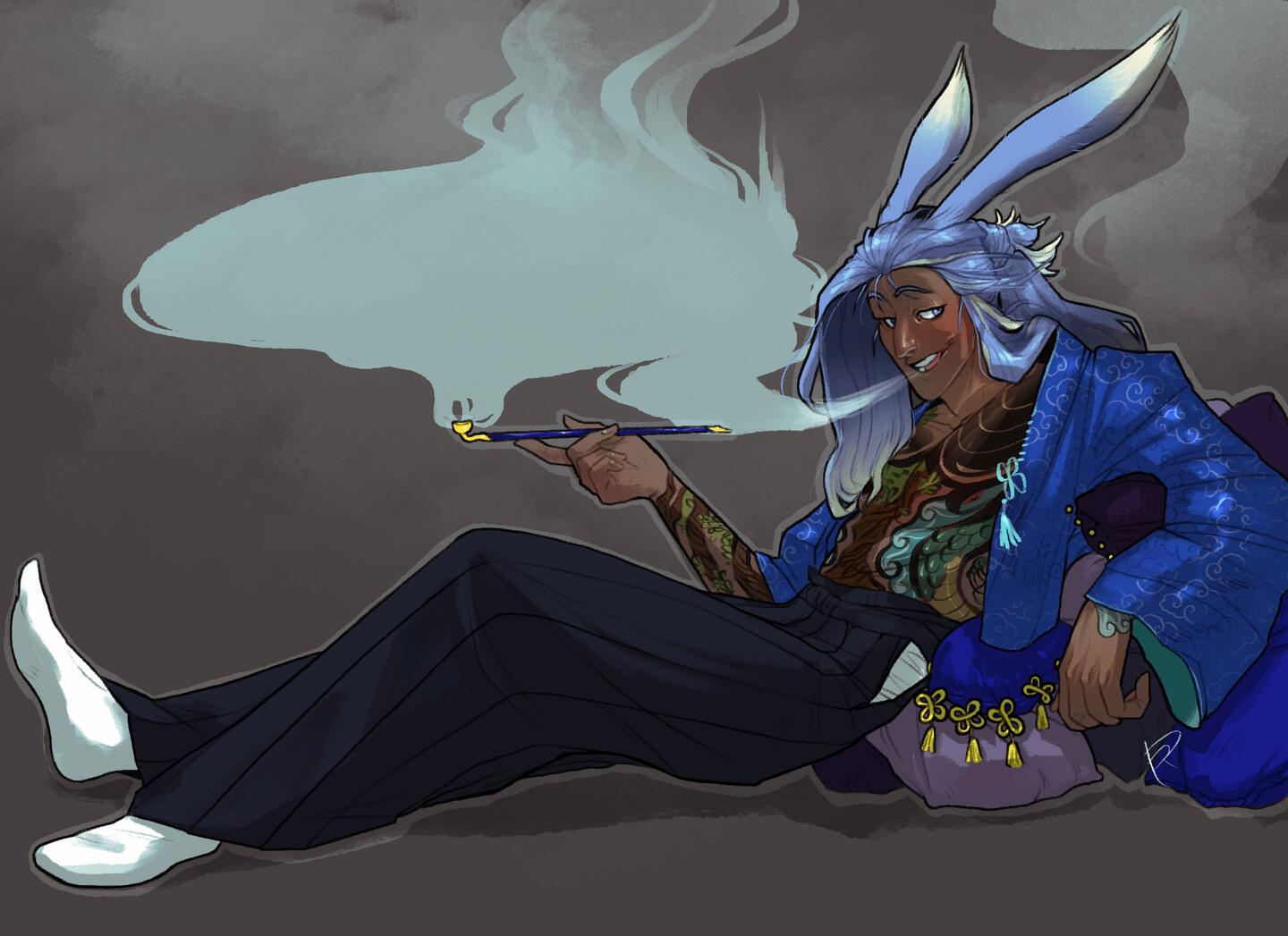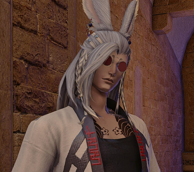 A viera enjoying the twilight years of his life, Zuichi is 208 years old. Though he still acts like he is in his early 100s. From a young age Zuichi did not hold much respect for the Green Word of the Rava. When he was around 20 years of age he left the homeland to strike out on his own as an adventurer.Since then he has traveled back and forth multiple times between Eorzea and the Far East, finding work wherever he could. Whether that work be mercenary work, dancing in a troupe, working in inns, or getting heavily involved in the seedy underbellies of cities like Ul'Dah and Kugane.Now he has just recently migrated to Ul'dah, where even in the last decades of his life he's looking for some excitement, trouble, or just someone to share a pipe of moko grass or fogweed with.